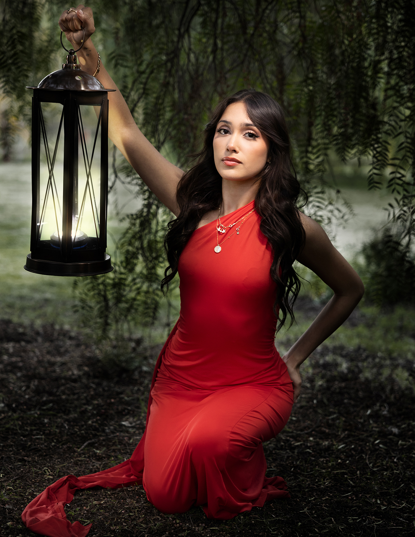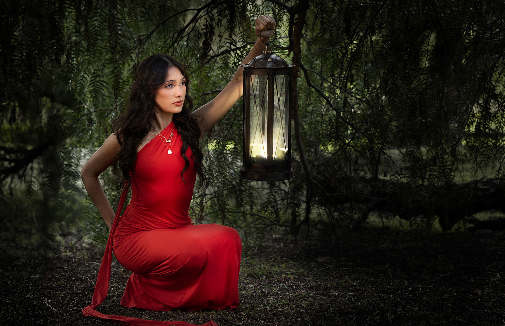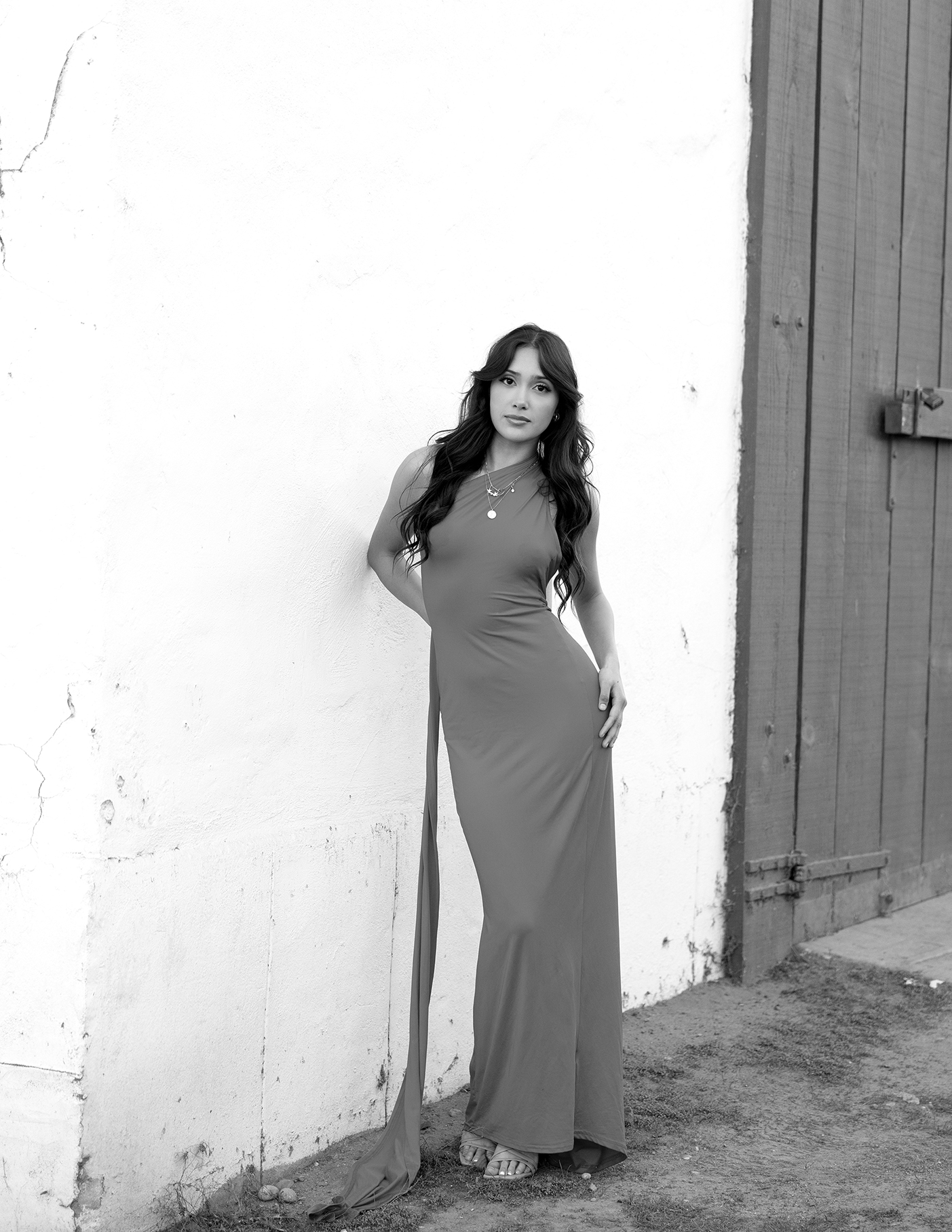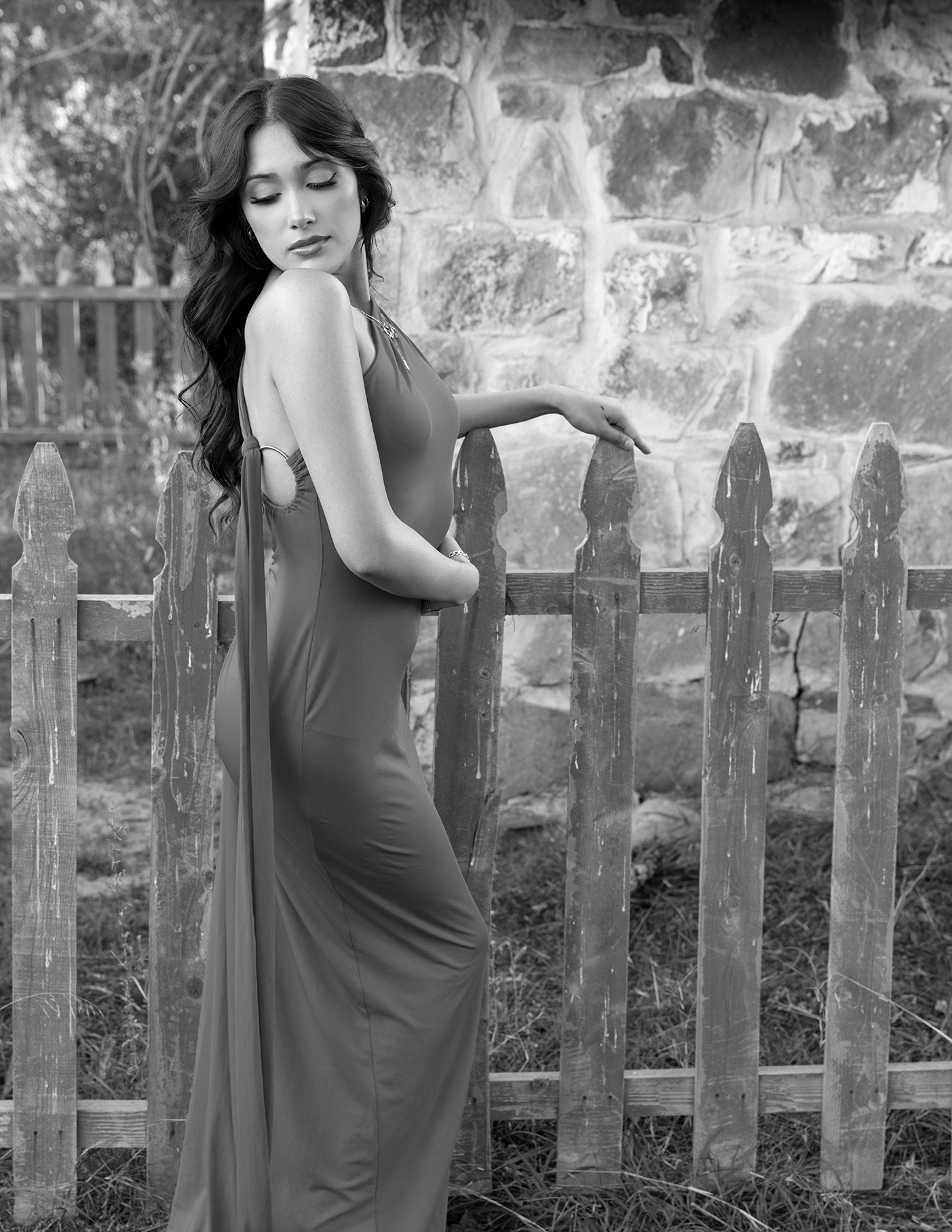 She arrives in a red dress, and the old ranch lifts its gaze. Up the stairs, and against ancient railings, rock walls and white-washed lattice. The past remains whole, while the present passes through, offering life, leaving respect, and lifting spirit.