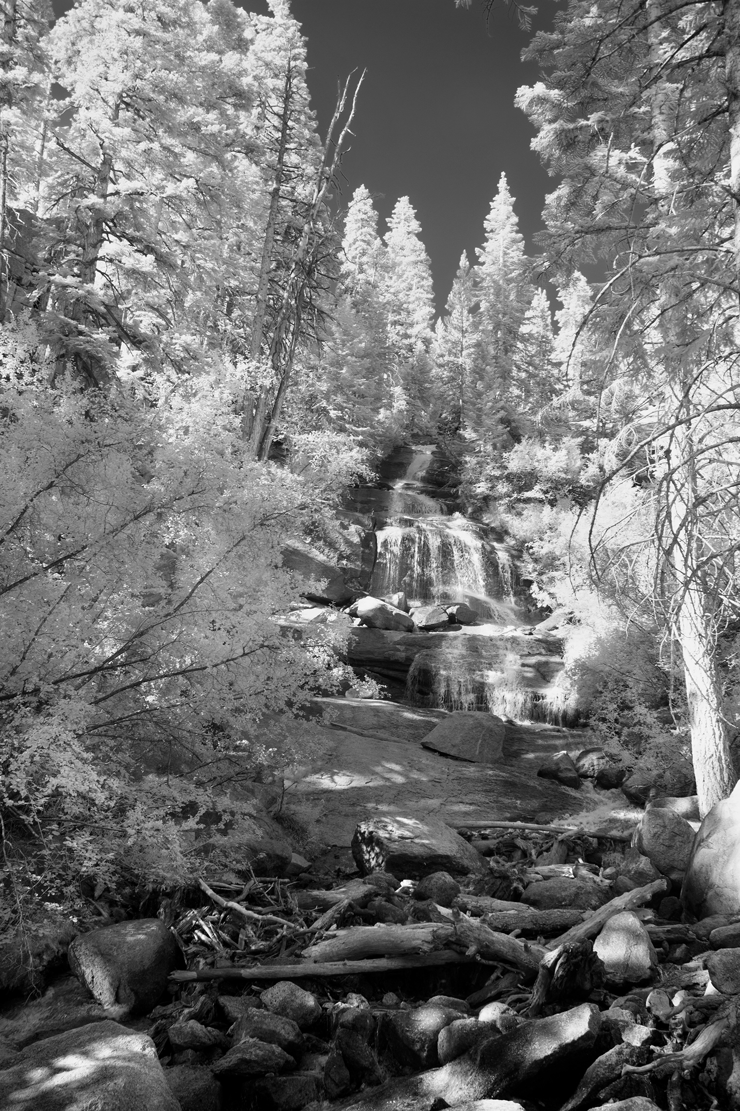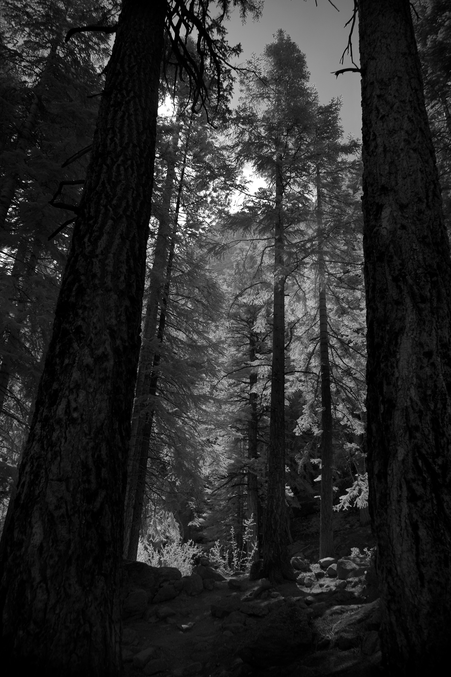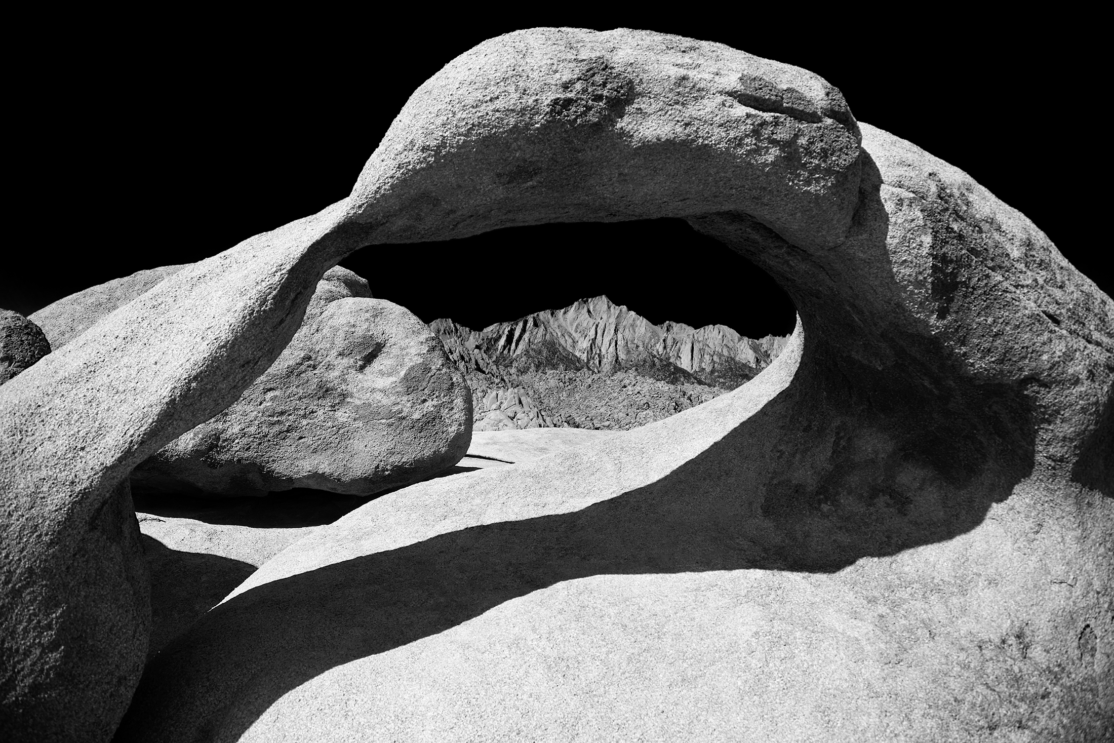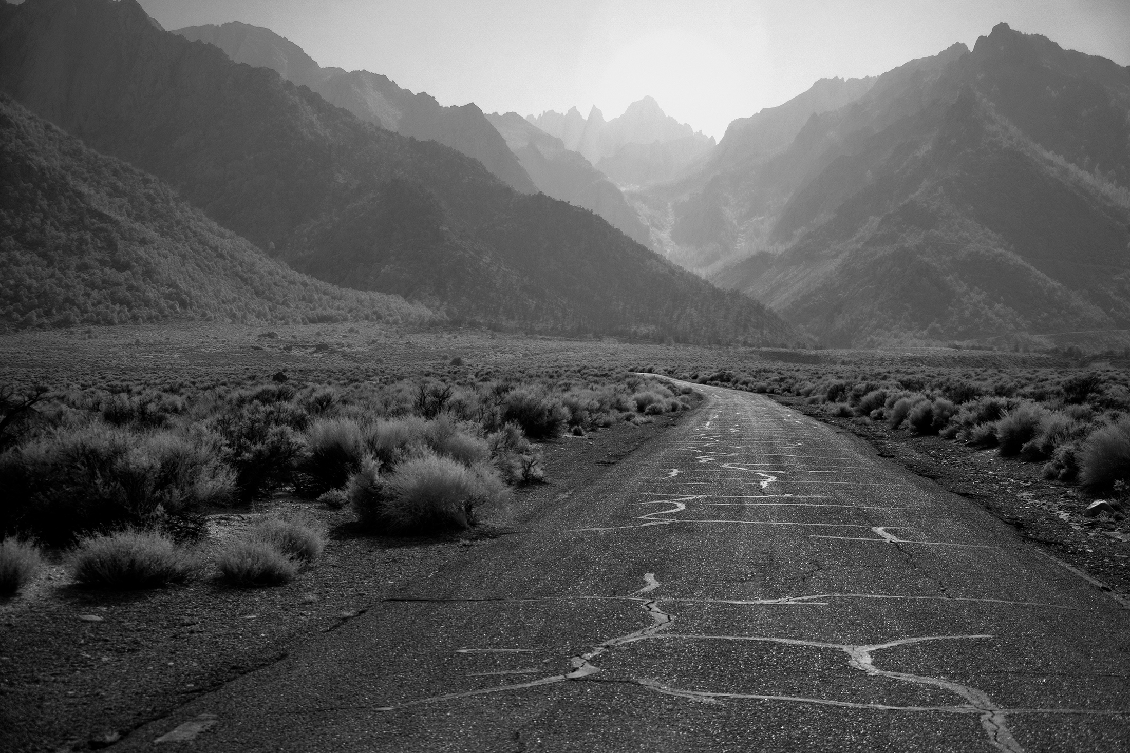 The tallest mountain in the lower 48 United States has been standing tall for millions of years. Mt Whitney – California. It may not seem to change much since formed by violent volcanic activity, but as I found out, Whitney Portal can dramatically alter its appearance. Each day, each year, and each century bring dramatic fluctuations that spotlight and obscure different vistas, peaks, valleys and intimate scenes. Sunrise, sunset, winter, summer and a 100 year fire presented totally unique experiences in one of Americas highest spaces. This was a single journey three years in the making. Captured in infrared and black and white, it is a study derived from a heightened curiosity to capture the same famous place across multiple visits and enjoy the different moods and the ever-changing personalities. A single wide open western U.S. adventure layered across three trips to Whitney.